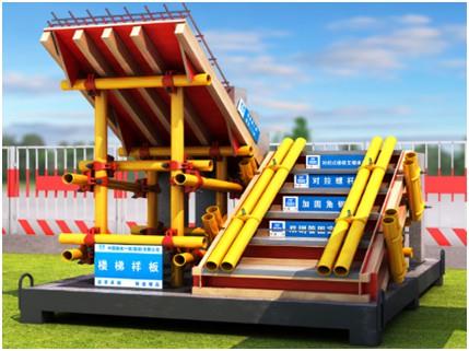 工藝展示:雙鋼管固定、對拉螺桿、樓梯支模體系、樓梯施工縫留設(shè)1/3處、施工縫鑿毛、清掃口、支撐模剪刀撐、梯板鋼筋綁扎、混凝土成品展示、樓梯模板卡槽式支護與加固等工藝。