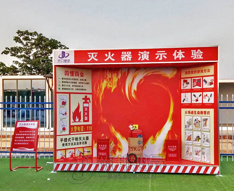 此次合作的工地安全體驗(yàn)區(qū)建設(shè)包括了班前講評(píng)臺(tái)、爬梯演示體驗(yàn)、洞口墜落體驗(yàn)、消防器材柜、滅火器演示體驗(yàn)等。